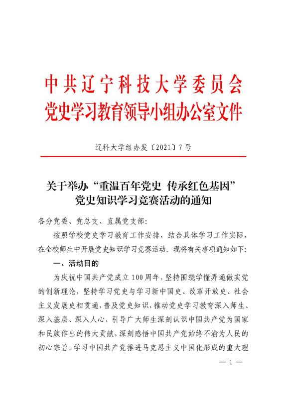 关于举办“重温百年党史 传承红色基因” 党史知识学习竞赛活动的通知
