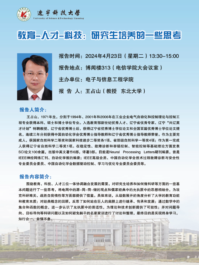 学术预告:教育—人才—科技:研究生培养的一些思考