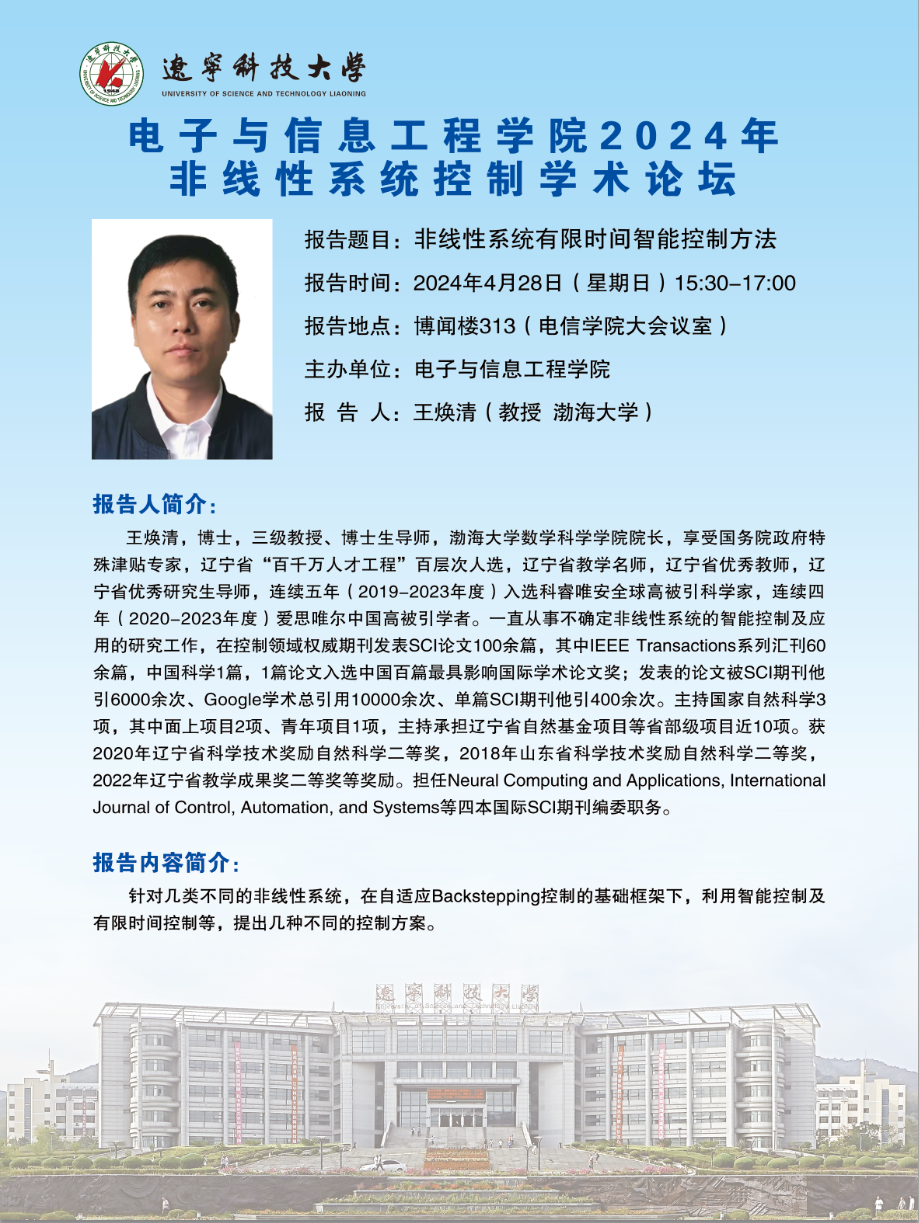 学术预告:非线性系统有限时间智能控制方法