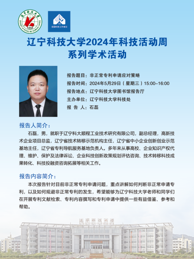 【科技活动周学术预告】非正常专利申请应对策略