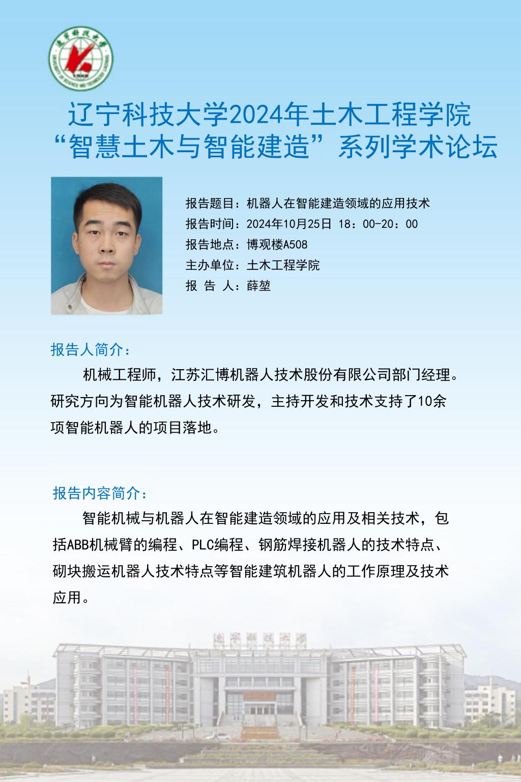 学术预告:机器人在智能建造领域的应用技术