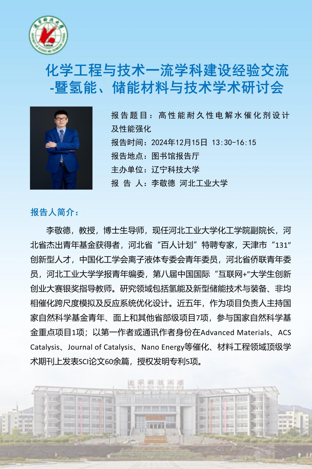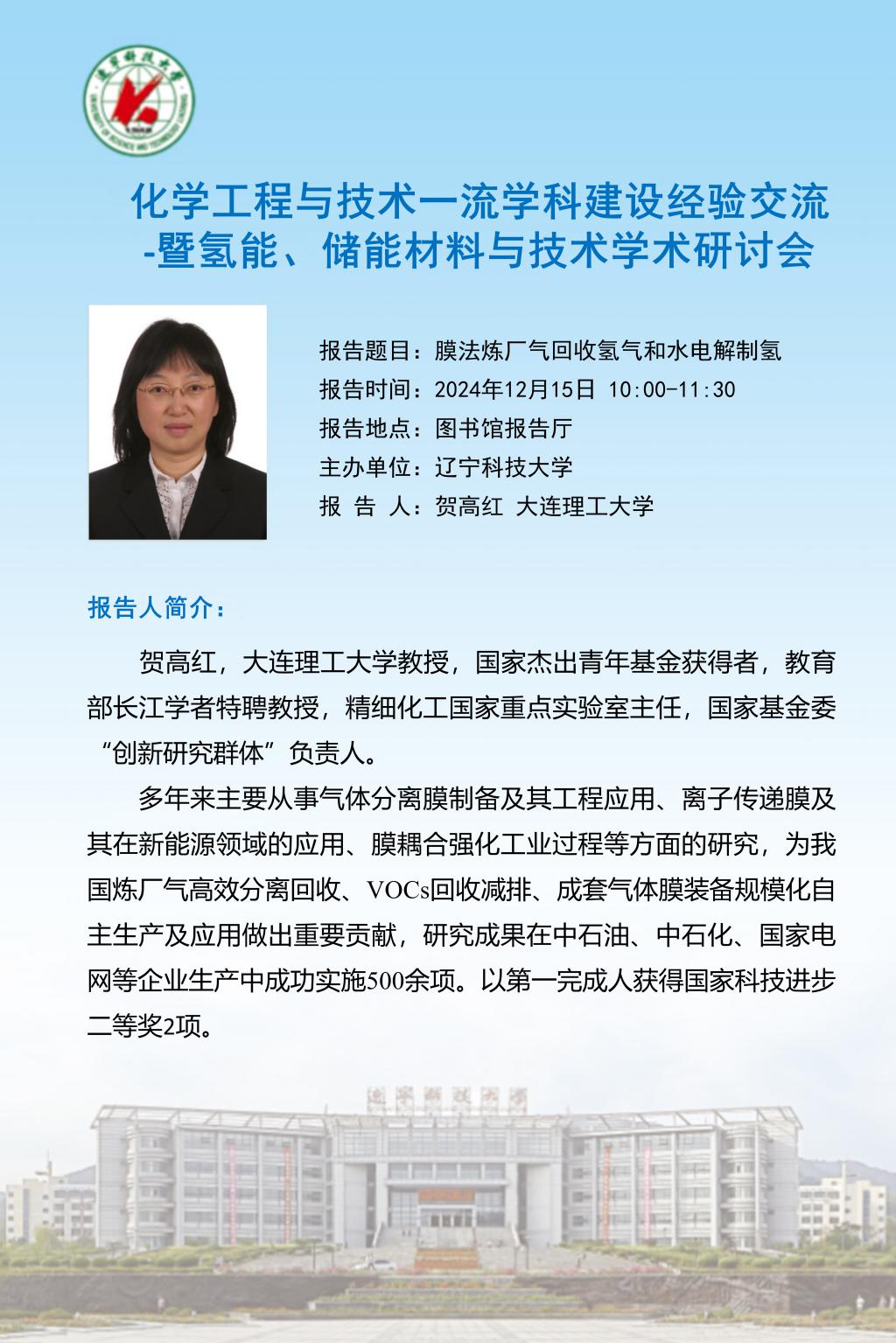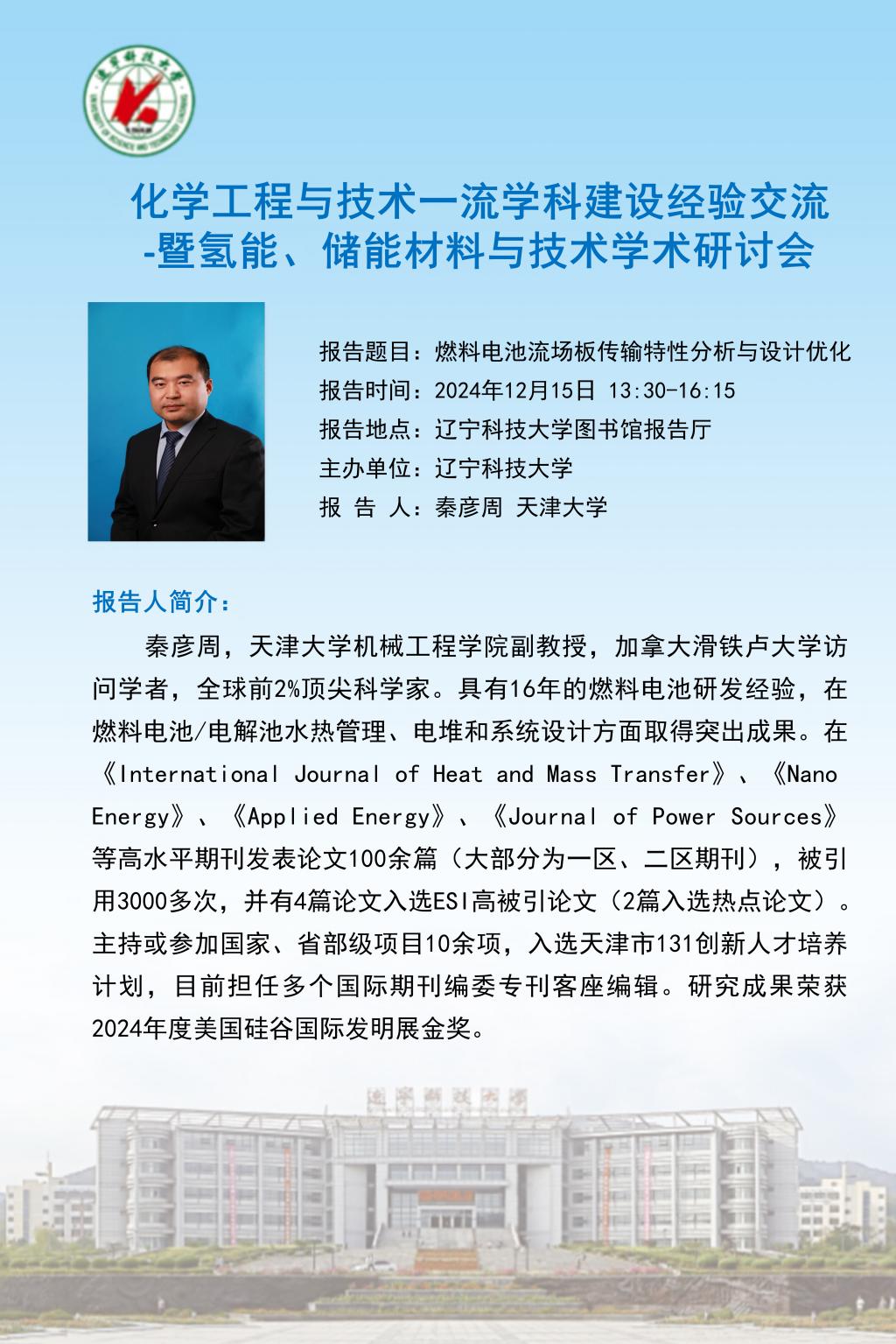 学术预告:化学工程与技术一流学科建设经验交流 -暨氢能、储能材料与技术学术研讨会
