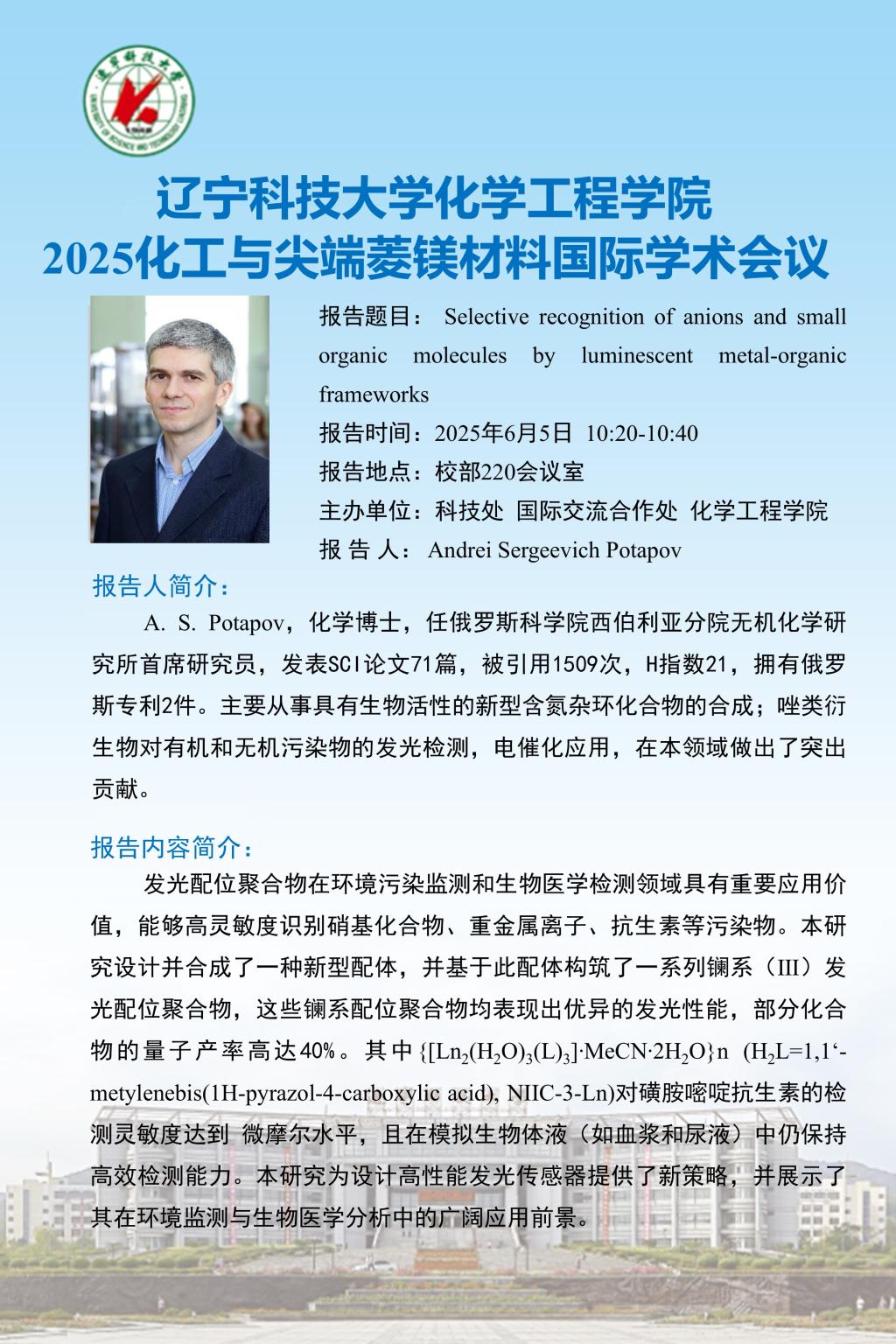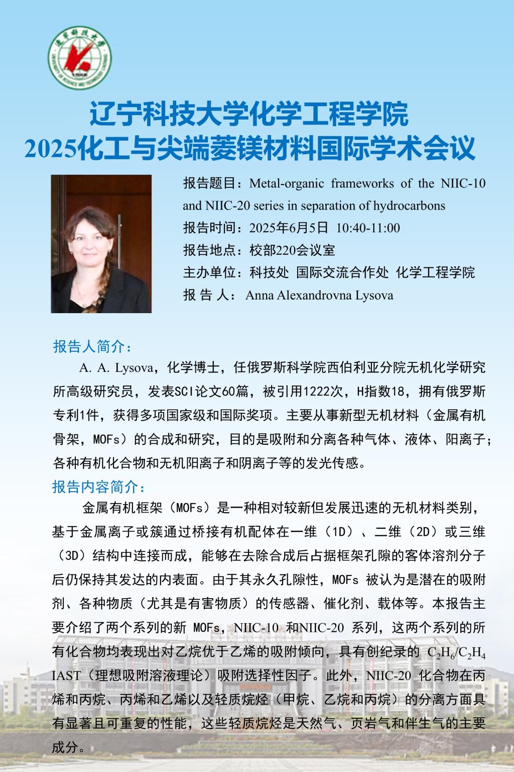【科技活动周学术预告】2025化工与尖端菱镁材料国际学术会议