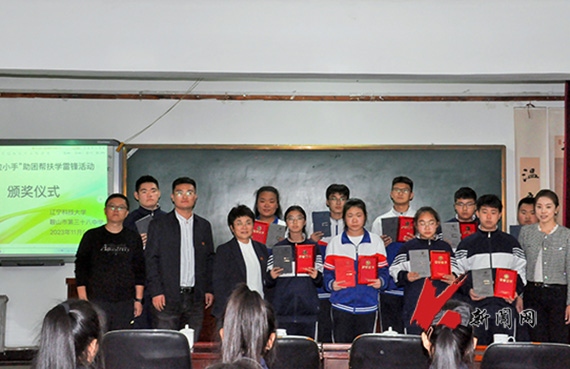 11月8日,九游在线官网_九游(中国)材料与冶金学院团委相关负责同志一行到鞍山市第三十八中学开展“大手拉小手”助困帮扶学雷锋活动,为来自第三十八中学的10名同学颁发材冶学院学生材控党支部“贫寒学子突出进步奖学金”,第三十八中学相关校领导出席活动。