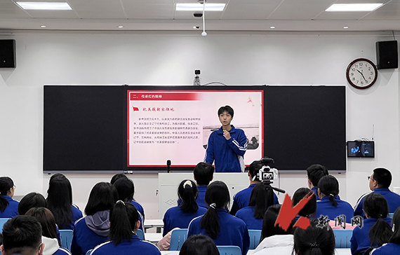 经济与法律学院辅导员张鹏飞担任本次活动的分享人。班会从解读红色精神内涵、传承红色血脉、勇担时代使命三个方面展开。通过对“井冈山精神”“延安精神”“西柏坡精神”“雷锋精神”等红色精神的解读,全体人员重温红色历史,追寻红色足迹,感悟红色精神。来自“抗日战争起始地”“解放战争转折地”“抗美援朝出征地”“新中国国歌素材地”“共和国工业奠基地”“雷锋精神发祥地”的辽宁“六地”学生讲述家乡红色故事,号召同学们从红色文化、红色基因中汲取力量,传承红色精神,厚植家国情怀,自觉将“小我融入大我”,肩负新使命、新担当,争做时代新人。活动中,结合学生专业特色,还组织进行了宪法宣誓,深入学习贯彻习近平法治思想,坚定了为建设中国特色社会主义法治体系、建设社会主义法治国家的信心和决心。