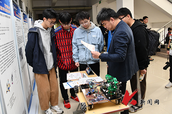 4月15日,九游在线官网_九游(中国)第八届大学生创新创业年会在学校创新创业学院(工程训练中心)举行。学校相关部门负责人,教师、学生评委,参展项目教师和学生等100余人出席年会。