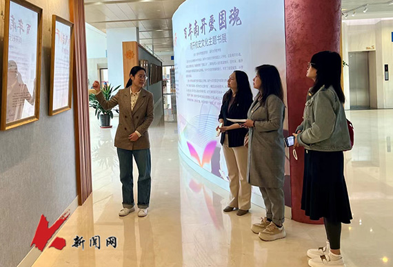 25日上午,团队一行来到南开大学津南校区中心馆,在副馆长张丽的引领下,参观了图书馆展览区、古籍博物馆、南开文库、各阅览区及藏书区、视听区、放映厅等区域,重点走访了学生自修区和研讨室,深入了解了学生对馆内自修座位的需求及使用情况。在随后的座谈会上,南开大学图书馆党委书记马亚男针对南开大学图书馆概况、党建引领促业务发展、多元空间服务、现代智能服务及深度学科服务等方面情况进行了介绍,双方就党建引领下图书馆制度建设对提升读者文化涵养和塑造良好阅读习惯等方面进行了交流。