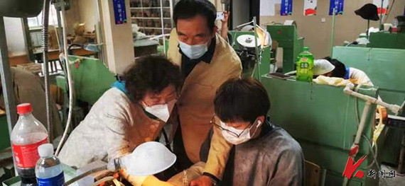 调研由建艺学院院长张国峰、副院长汪江带队,鞍山市宝玉石协会秘书长王吉禹、鞍山技师学院玉雕分院(岫岩满族自治县技工学院)校长代慧丹、副校长李红伟及部分岫岩的中国玉雕大师参加了座谈会。与会人员以“如何培训提高玉雕设计制作人才能力”为主题进行了热烈的讨论。针对地方从业人员文化水平低,艺术理论不足的现状,以及产教融合培养应用型人才调整学校培养计划等方面提出了具体的意见与建议。会议为学院今后社会培训和人才培养拓宽了视野,明确了方向。在此期间,学院领导看望了在岫岩进行毕业设计的2019级产品设计玉雕方向学生,并对他们的作品进行了现场指导,对学生们的创作给予了鼓励和肯定。