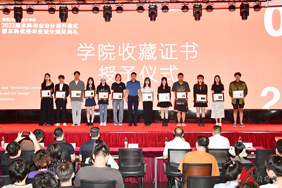会上,宣读了获得本科优秀设计作品学生名单及收藏作品学生名单,并为获奖同学颁发了荣誉证书与收藏证书。李胜利寄语毕业生,他希望同学们能够保持对艺术的热爱与执着,勇敢面对困难和挑战,加强多元文化之间的互动交流,用艺术讲好中国故事。指导教师代表管歆代表学院为毕业生送上美好的祝福,她希望同学们在今后的道路上学会感激与尊重,学会宽容和助人,不论顺境或逆境都能乐观奋斗、百折不挠。学生闫航宇代表全体毕业生发言,他首先感谢学校为大家提供广阔的平台和诸多的帮助,希望同学们经过不懈的努力都能像玉石一样绽放出温润而夺目的光亮。