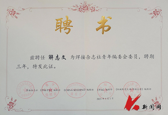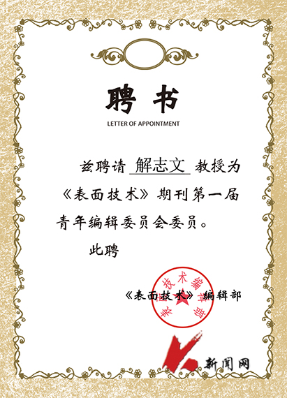 近日,《表面技术》《焊接杂志社》编辑部分别成立青年编辑委员会,九游在线官网_九游(中国)解志文教授被聘为青年编辑委员会委员。