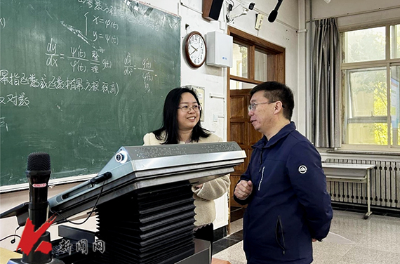 发展规划处处长屠良平充分肯定了“高等数学”课程授课教师洪丽莉的教学设计,从知识点引入到应用拓展衔接自然,将复杂的数学原理讲得通俗易懂,有效降低了学生的学习难度。他提出应增加课堂互动,让学生从“被动听”转向“主动思”,培养学生逻辑思维与实践应用能力,为后续专业课程学习筑牢根基。他说,深入课堂了解教学实况将为学校专业动态调整和优化提供来自教学一线的重要依据,保证学校专业体系建设始终紧跟时代发展,为培养具备持续竞争力的高素质应用型人才提供坚实保障。