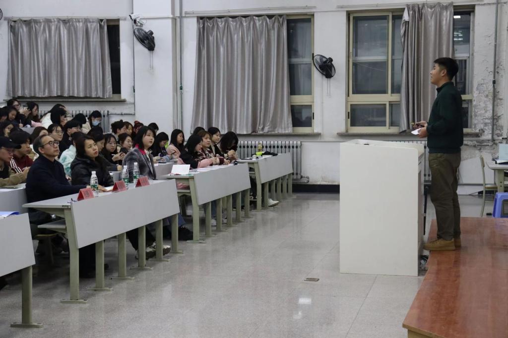学院党委副书记张国华作题为“逐梦经法 共筑未来”的主题宣讲。他从专业培养目标、学生工作思路、就业先进典型、学业发展内容四方面进行了具体讲述。他首先提出了目前学院学生骨干在学习和工作中存在的问题及解决途径,并以“强思想、促学业、重实践、展形象、保平安”来具体落实学生工作的发展目标,结合“经法男人帮”、经法学院优秀毕业生案例鼓励大家在学习生活中强化主动意识、诚信意识、责任意识,勇于争先、敢于挑战,努力提升学生骨干的学业水平。