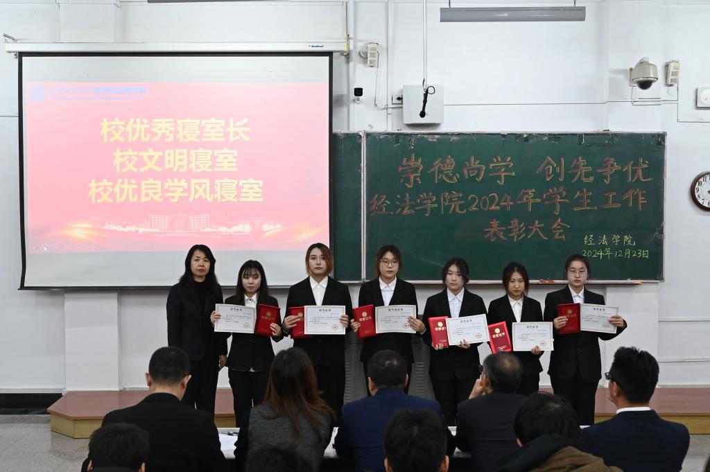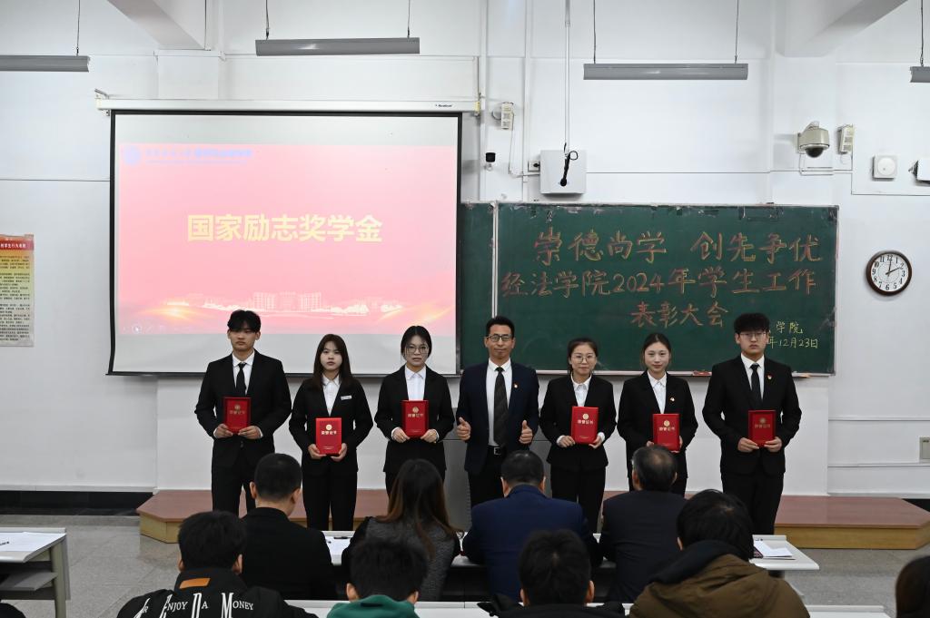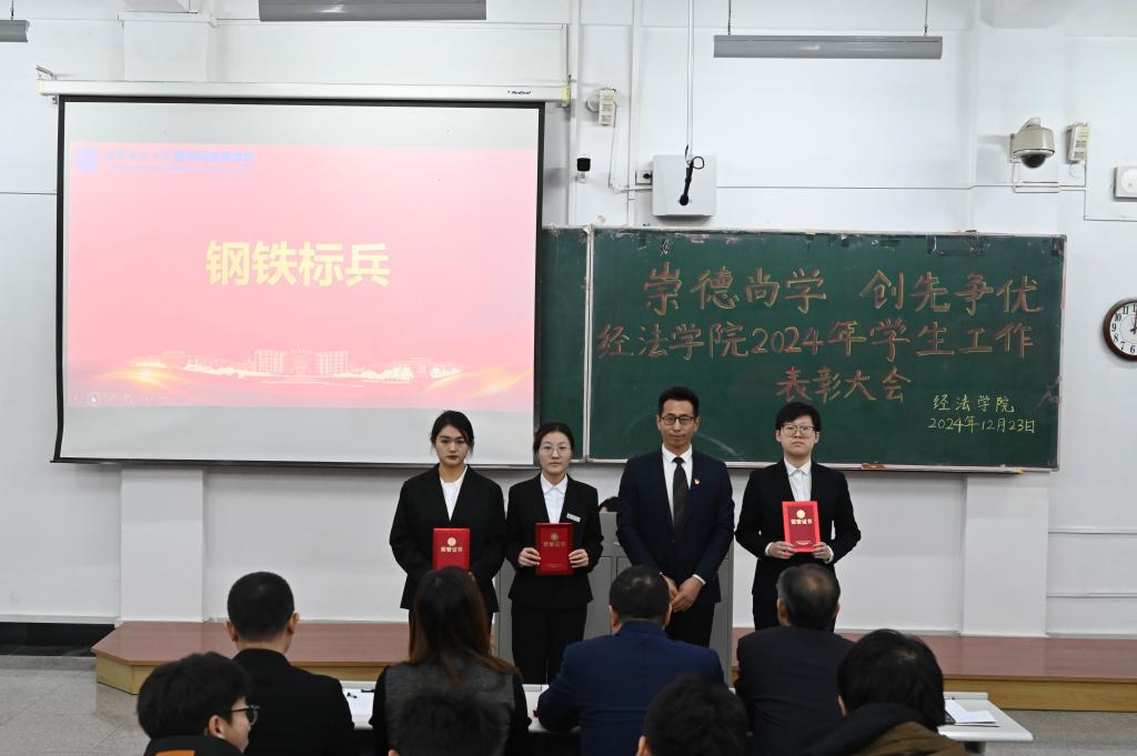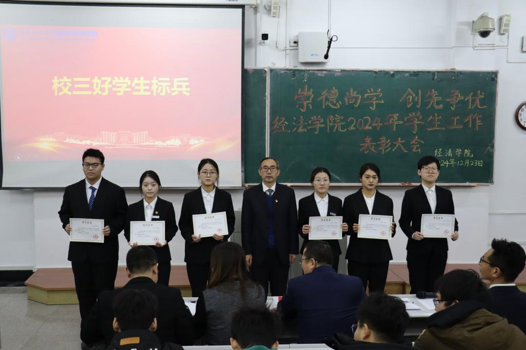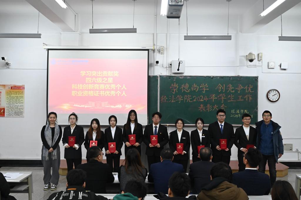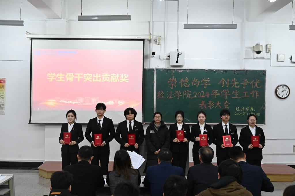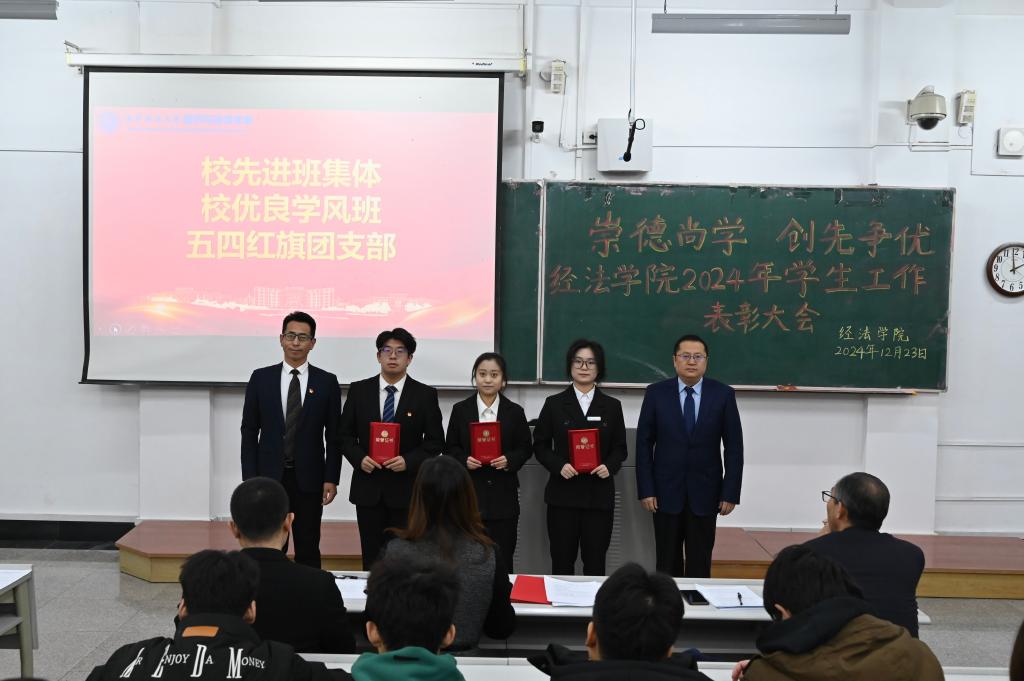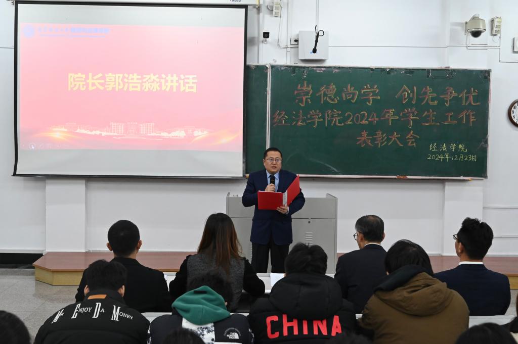 12月23日,经法学院于博学楼A101召开“崇德尚学 创先争优”2024年学生工作表彰大会。会议由学院党委书记赵智博主持,学院领导、各系主任、班主任、辅导员、获奖学生代表及2024级全体学生参加。