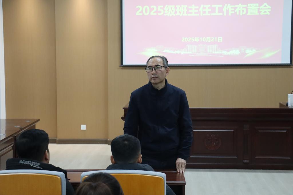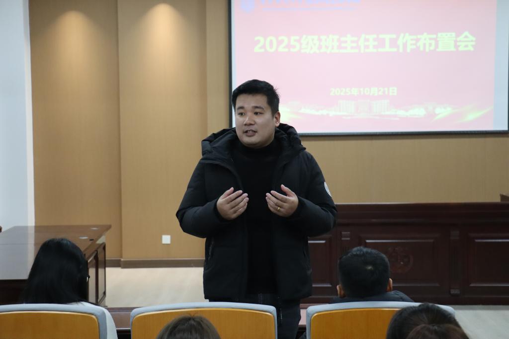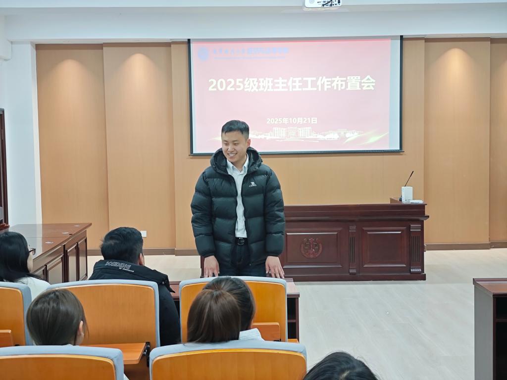 10月21日,经法学院于博识楼A402召开新生班主任与班干部对接会,学院党委书记赵智博、党委副书记张国华、学办主任李路云、8名新生班主任及2025级各班班委代表参加了会议。