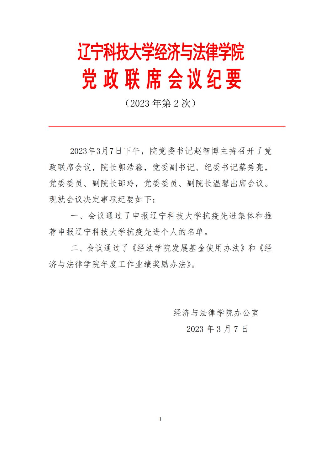 九游在线官网_九游(中国)经济与法律学院党政联席会会议纪要(2023年第2次)