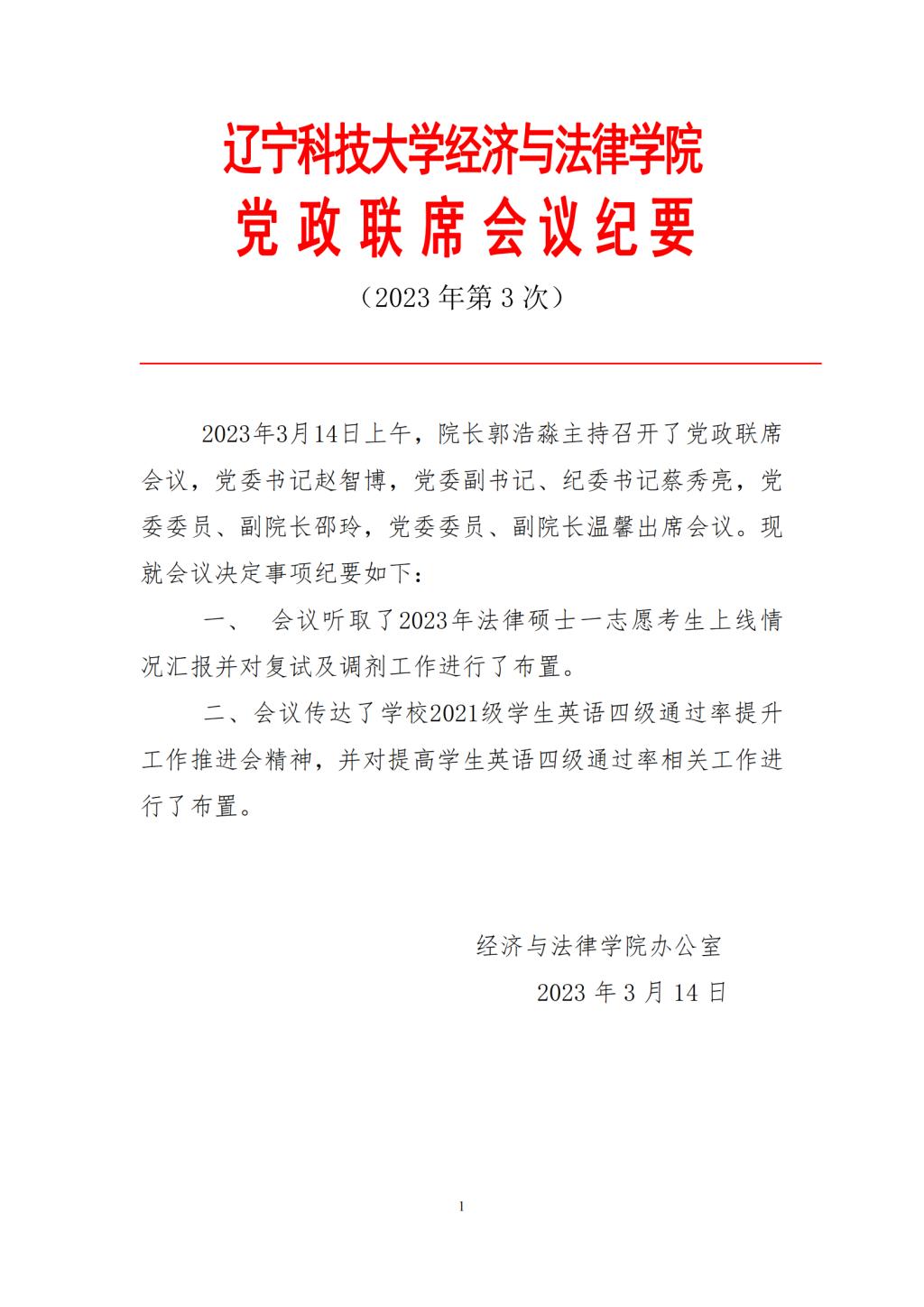 九游在线官网_九游(中国)经济与法律学院党政联席会会议纪要(2023年第3次)