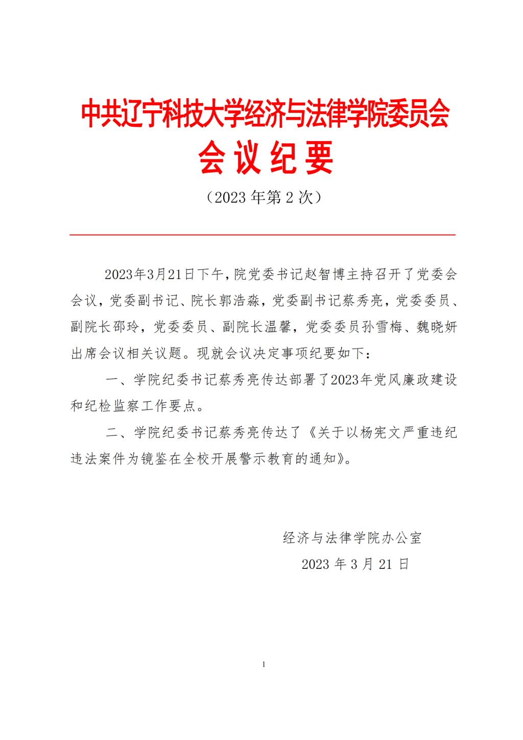中共九游在线官网_九游(中国)经济与法律学院委员会会议纪要(2023年第2次)