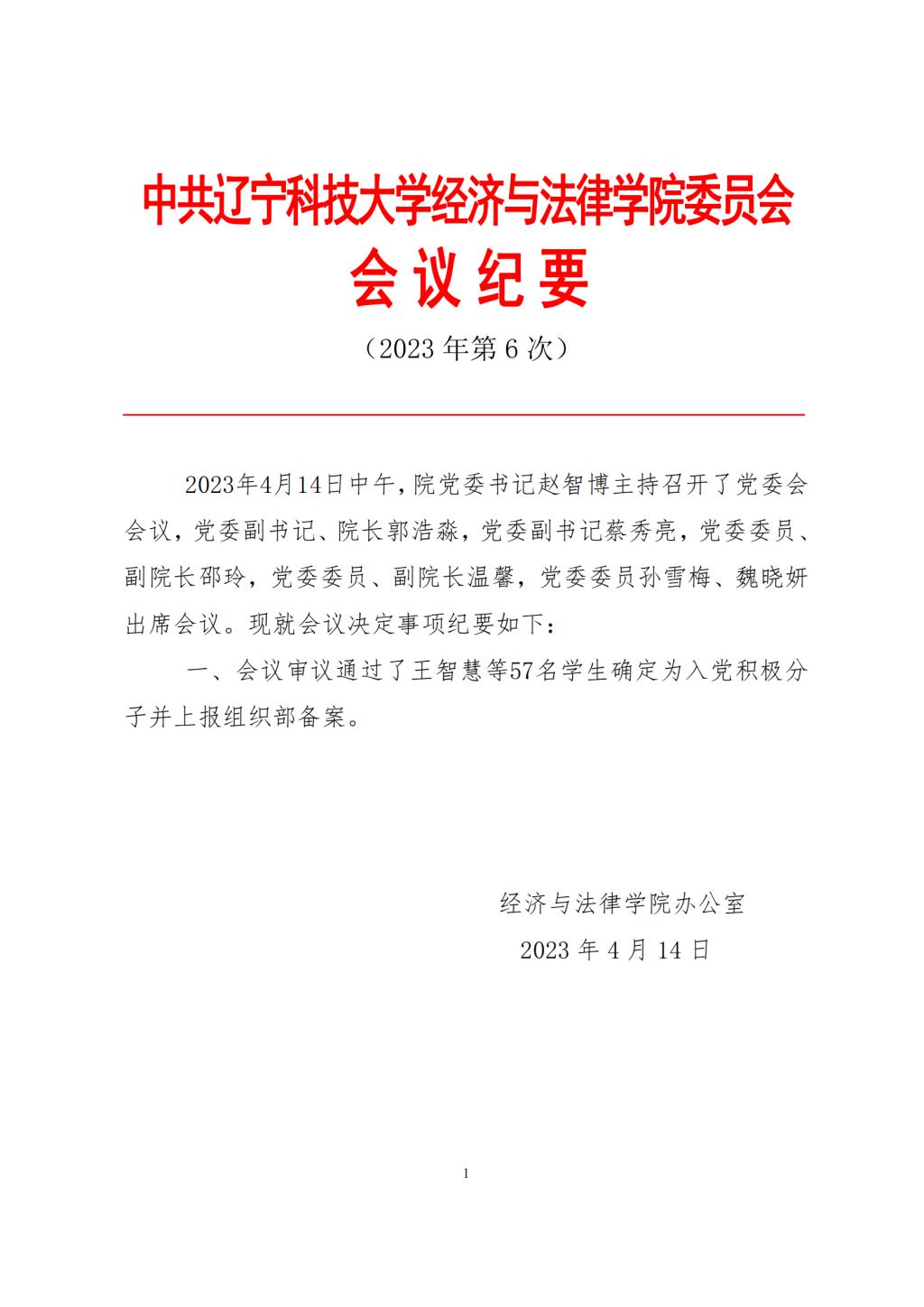 中共九游在线官网_九游(中国)经济与法律学院委员会会议纪要(2023年第6次)