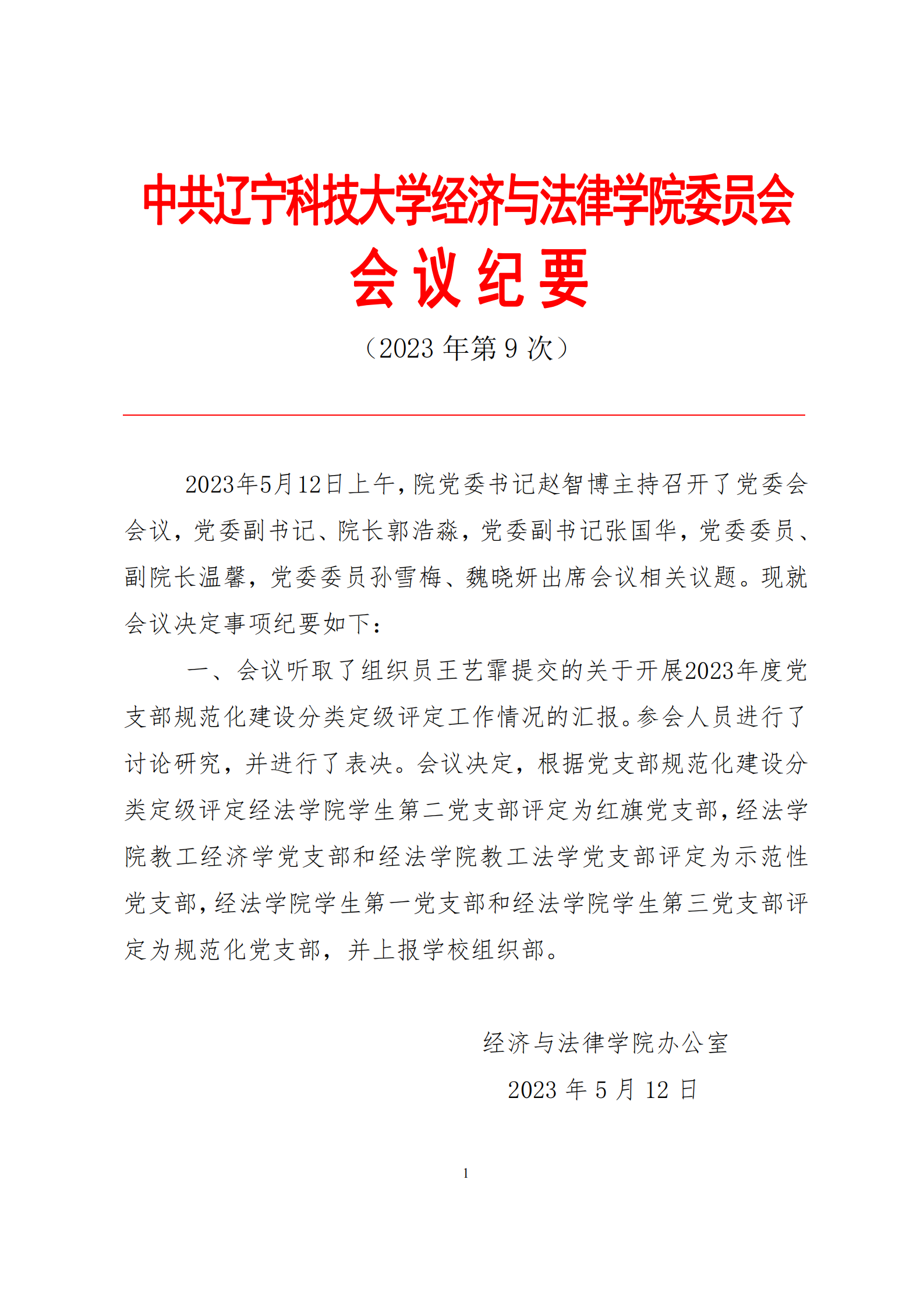 中共九游在线官网_九游(中国)经济与法律学院委员会会议纪要(2023年第9次)