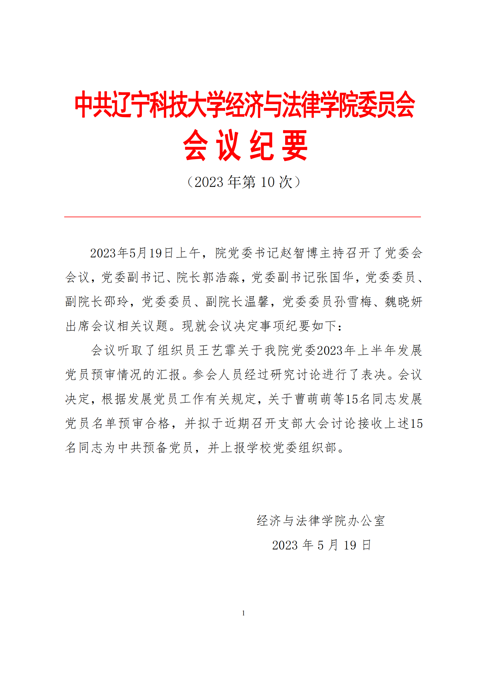 中共九游在线官网_九游(中国)经济与法律学院委员会会议纪要(2023年第10次)