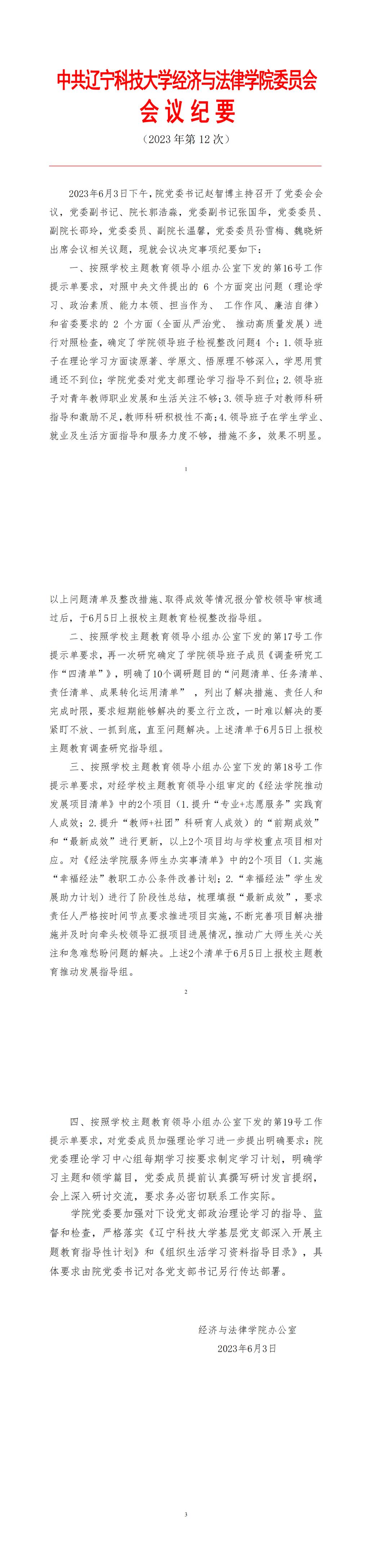 中共九游在线官网_九游(中国)经济与法律学院委员会会议纪要(2023年第12次)