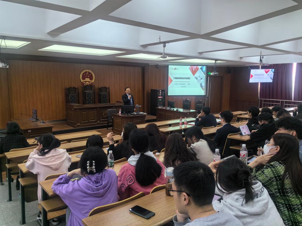随后,王守军律师结合法律实践为大家分析了当前法律专业人才职业发展方向和建议,并送给同学们十六字寄语:“珍惜当下、努力储能、谋划发展、未来可期”。王俊强律师为与会同学做《工程建设领域的总承包模式》讲座。讲座内容主要包括总承包模式的概念特征、规范及国内发展、主要区别、实务中的主要问题四个方面,为同学们详细讲述了工程建设领域的相关问题及论文选题等。