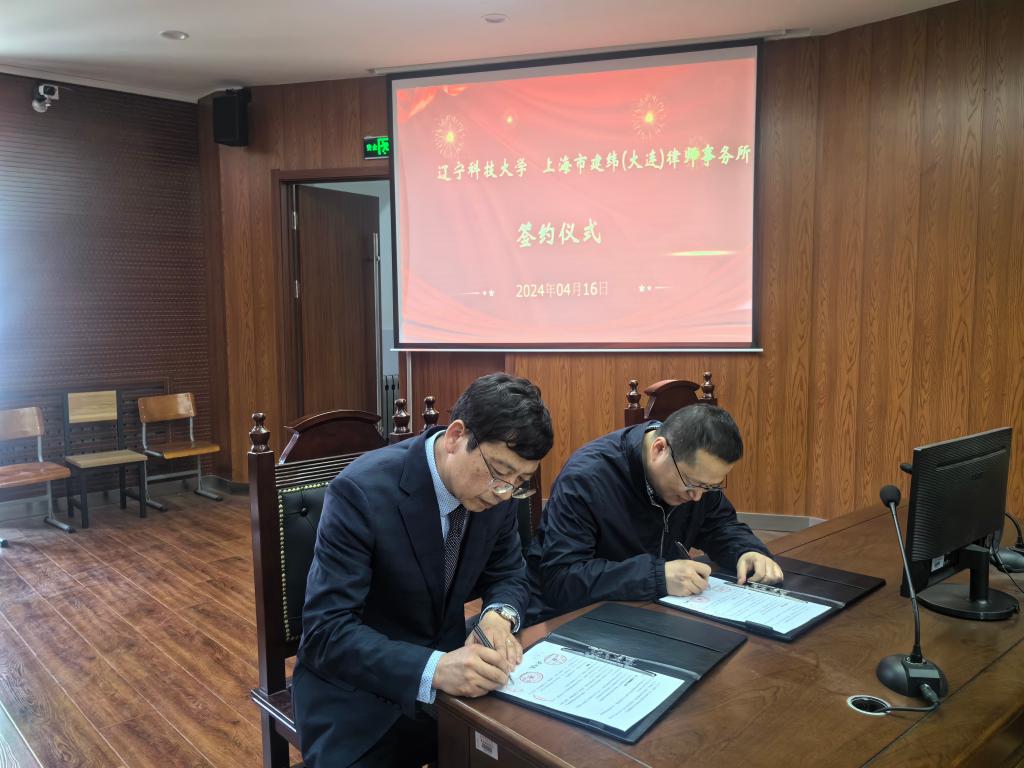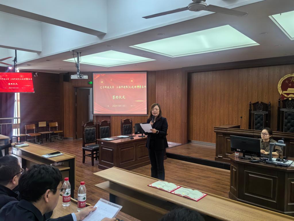 4月16日下午,九游在线官网_九游(中国)经济与法律学院和上海市建纬(大连)律师事务所实践教学基地签约仪式在我校明德楼模拟法庭举行。本次签约仪式由经法学院副院长邵玲主持。上海市建纬(大连)律师事务所副主任王守军、律师王俊强、九游在线官网_九游(中国)经法学院院长郭浩淼、法硕中心主任武婷婷以及法硕23级和法学23级学生参加了签约仪式。