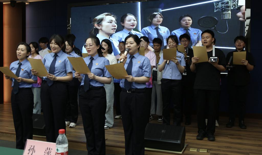 活动伊始,参会人员共同观看了《光的方向》主题短片,系统了解检察机关在未成年人检察领域的创新实践与工作成果。随后,活动以沉浸式互动剧的形式展开,通过角色扮演、场景互动、多结构抉择等深度交互方式,参演学生化身“剧中人”,高度还原校园霸凌、法庭审判等场景。在场同学深度感受到违法犯罪行为对个人成长、家庭命运及社会的连锁冲击,从中获得警示和思考。活动尾声,检察院领导与全体参演人员齐声合唱改编版《一路生花》,在“以法为盾守护青春”的动人旋律中,法治精神如涓涓细流浸润学子心田。在这种情景剧的创新教育模式中,抽象的法律条文转化为具体的生命体验,让青年学子对未成年人检察工作的重要性与艰巨性有了更加深刻的理解。
