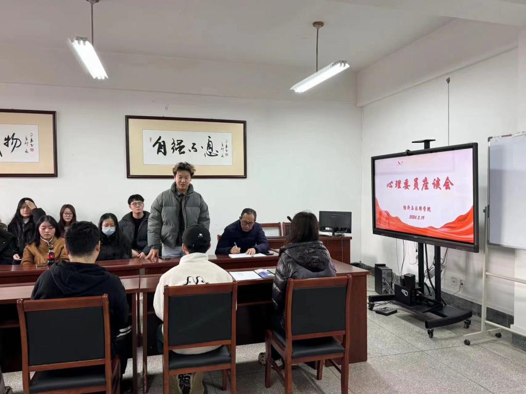 座谈会上,张国华向心理委员们强调了心理健康工作的重要性,并表示希望大家能够充分发挥自身优势,积极担当作为,认真履行职责,多学习心理方面知识,多观察多了解同学,在关键节点、同学家里发生重大变故时能为同学们提供心理支持和帮助,让同学在学习生活上心情舒畅。随后,心理咨询老师齐艳萍对学院的心理测评数据进行了深入分析,说明了当前学生心理健康存在的问题,并向大家强调了作为心理委员的多重身份,心理委员不仅是心理健康教育的宣传者,也是同学心理状态的观察者、调节者,更是辅导员的信息传递者。她表示,希望各心理委员都能明确自身责任,同辅导员一起为班级同学的心理健康保驾护航。最后,两位老师与心理委员们进行了深入的互动与交流,并就心理委员在实际工作中遇到的难题进行了解答。心理委员们纷纷积极发言,分享了自己在工作中的实际体验与困惑,通过充分的交流,参会心理委员获得了组织班级心理工作有效开展的新启示。