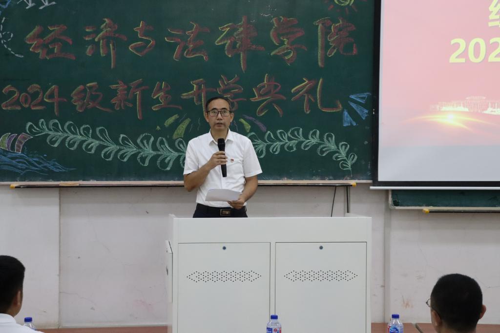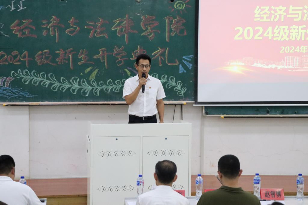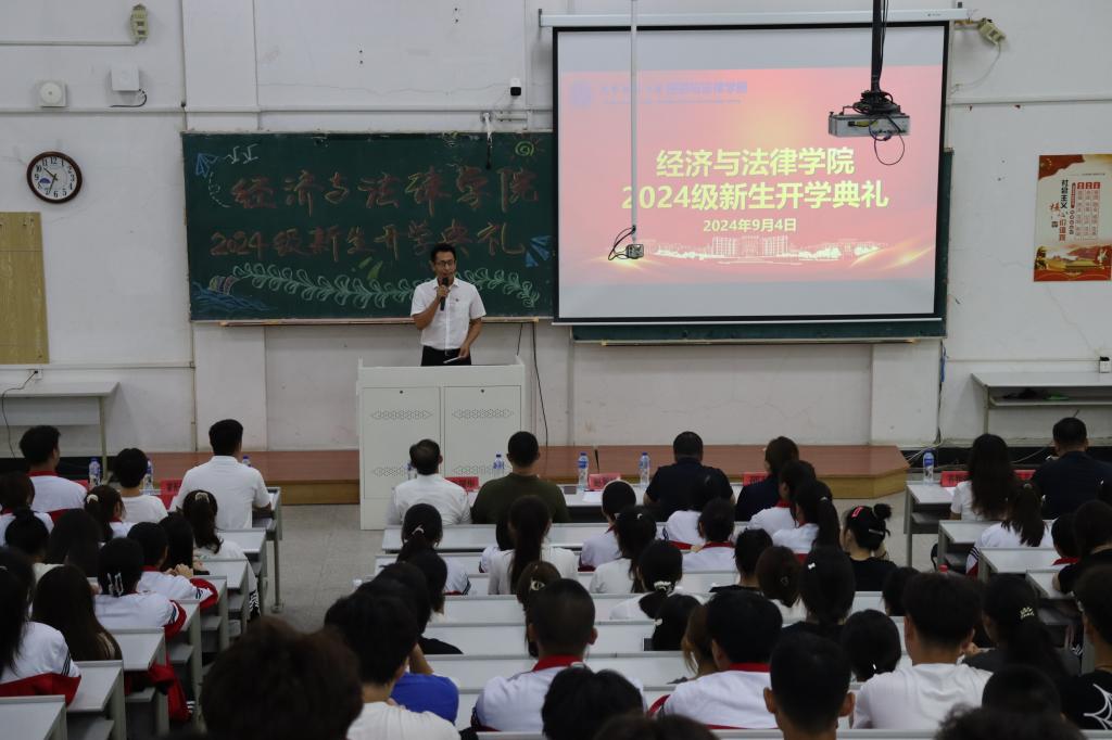 9月4日,经法学院于博学楼C302举办2024级本科新生开学典礼。典礼由学院党委副书记张国华主持,学院领导班子全体成员、辅导员、教师代表、家长代表及2024级261名本科生参加了本次典礼。