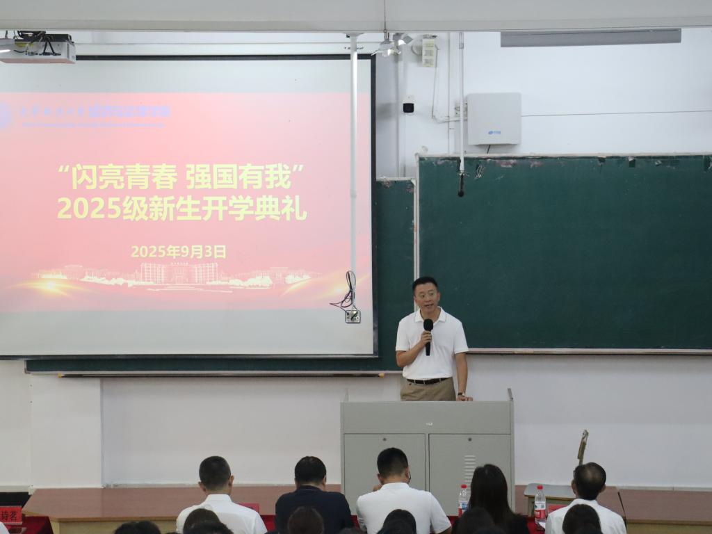典礼在庄严的国歌声中拉开帷幕,党委副书记张国华代表学院向2025级新生致以热烈欢迎,为新生们送上诚挚的入学祝福。随后,全体新生共同观看学院学生工作成果视频,直观感受学院在学生培养、实践育人、学风建设等方面的丰硕成果,深刻体悟经法学院的学科特色与精神风貌。