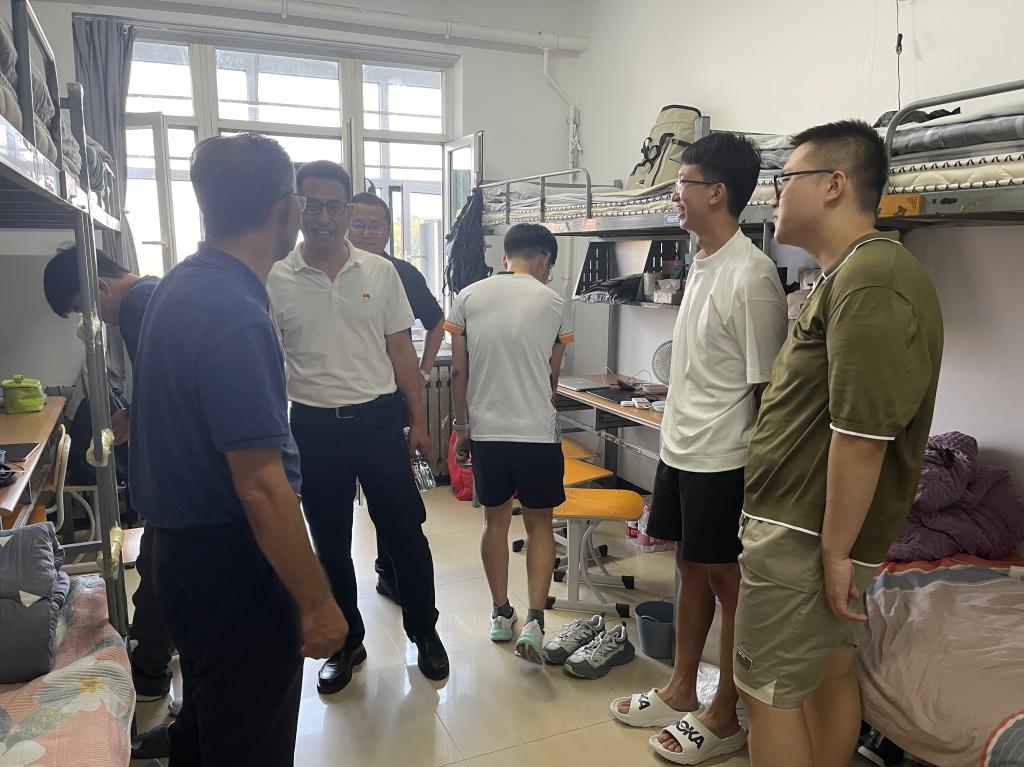 在走访过程中,学院领导与新生们亲切交流,细致询问大家的家乡籍贯、初入大学的生活感受与适应情况,耐心倾听同学们在宿舍生活、课程衔接等方面遇到的疑问。同时,领导们鼓励新生尽快调整心态,适应大学的学习节奏与集体生活,主动探索经法专业的学科魅力,扎实学好专业知识,为未来的职业发展与人生规划筑牢基础。针对新生们在大学生活初期可能面临的问题,老师们也从多方面给出贴心建议:一是提醒大家合理安排时间,保持规律作息与高效学习,兼顾学业与生活;二是强调宿舍卫生的重要性,引导同学们共同做好宿舍日常清扫,营造整洁、舒适、和谐的居住环境;三是倡导大家珍惜室友情谊,主动沟通、互帮互助,用心维护宿舍成员间的良好关系,共同营造团结友爱的集体氛围。