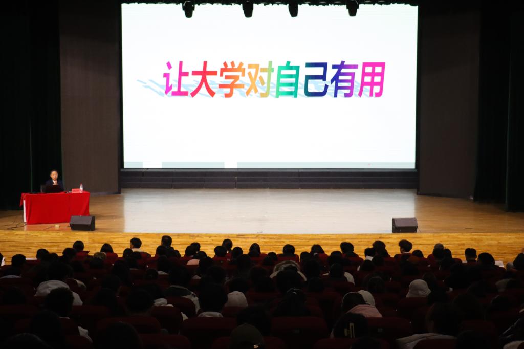 在让大学对自己有用板块中,杨洪泽教授受邀主讲。讲座伊始,他引导同学们思考“为什么上大学”“上大学的意义与宗旨是什么”等问题,指出大学阶段的不同选择将引领人生走向不同方向。他强调,大学不仅是纵横交错的学习场所、全方位能力培养的成长平台,更是连接校园与职场的桥梁。他鼓励新生做一个自立、自觉、自持、自强的人。随后,他从成长、恋爱、社交、学习、心态五个方面展开阐述,并以“励精图治、德行天下”八字赠与2025级新生,勉励大家成为有用之人。