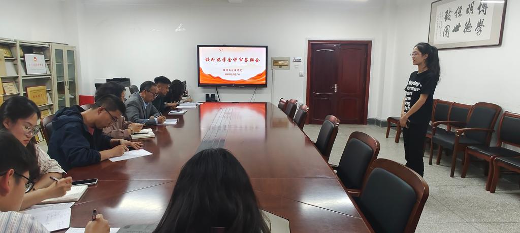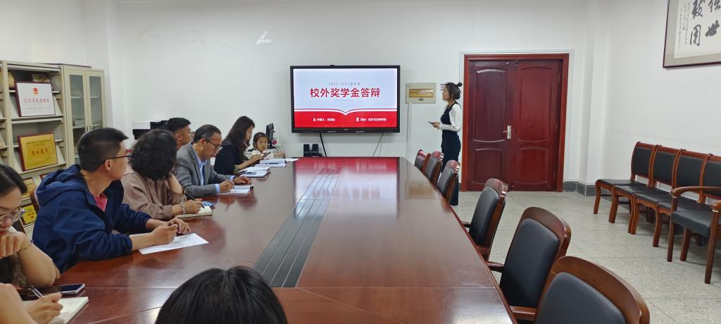 为更好地激励同学们积极进取、奋发向上,树立学生榜样,5月8日下午,经法学院在博识楼A305召开校外奖学金评审答辩会。经法学院党委副书记张国华、学办主任齐艳萍、团委副书记张鹏飞、教师代表魏晓妍、班主任代表李俊及学院学生会主席团成员组成奖学金评审小组,经过层层筛选,共计16名候选人参与答辩。