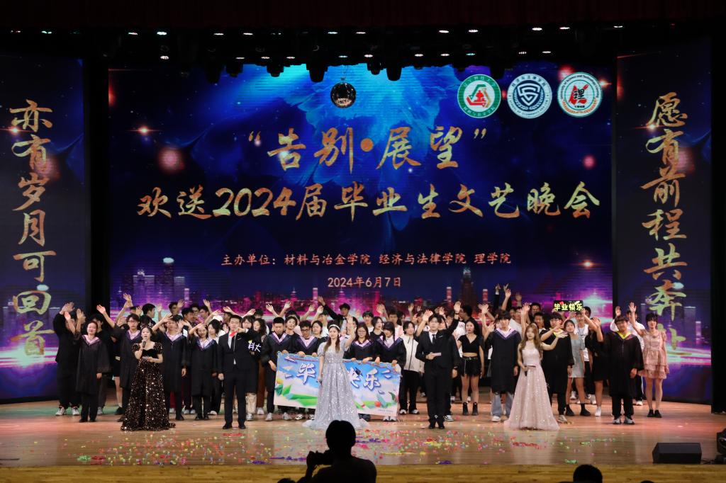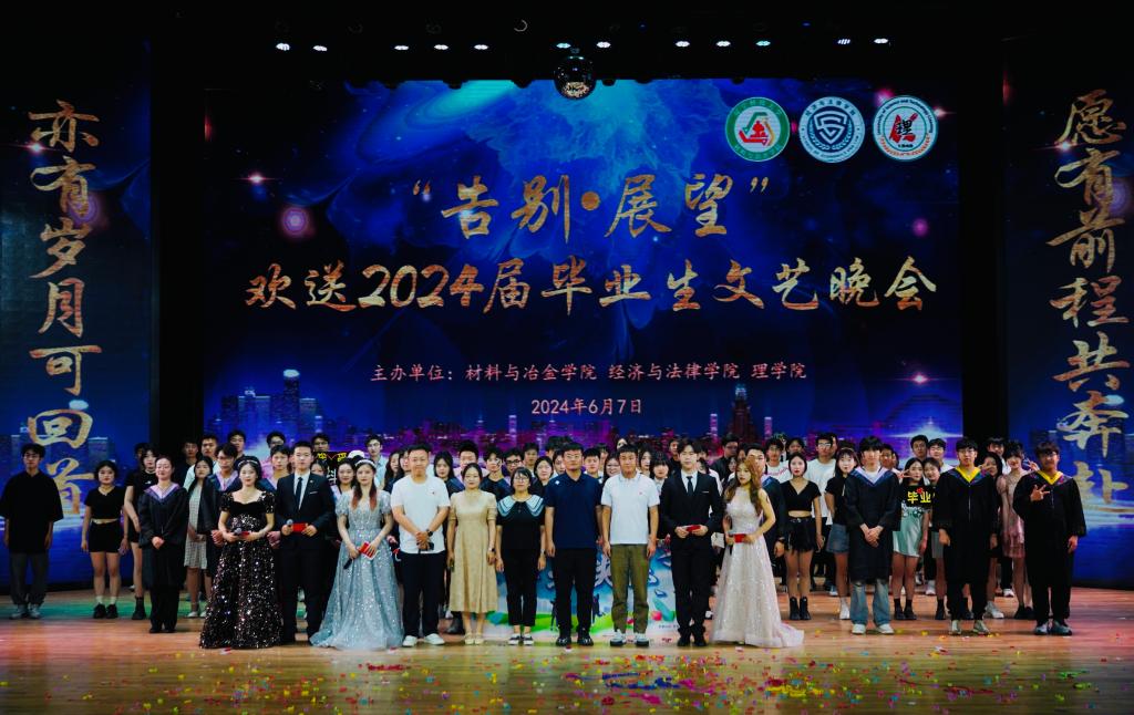 蝉鸣伊始,夏风已至,又是一年毕业季。6月7日晚,经法学院联合材冶学院、理学院于学校礼堂联合举办“告别·展望”欢送2024届毕业生文艺晚会。经法学院、材冶学院和理学院近900名师生观看了本次演出。