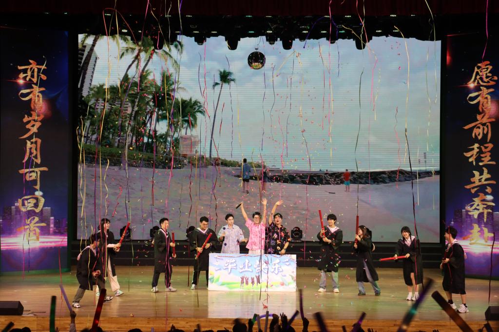 毕业在即,骊歌唱起,共赴前程。由汀兰民乐社带来的《盛世国乐》、材冶学院和理学院学生共同演奏的《鸳鸯戏》以及YOLO西洋乐乐队带来的《golden hour》等乐曲充分展现了中国传统音乐的风采魅力和西洋乐的清新明快,让人沉醉。经法学院学生演唱的《浮光》、理学院学生带来的歌曲串烧和材冶学院演唱的《这世界有那么多人》等歌曲满载着毕业生们对校园的依恋、对青春的感慨,离别与感恩之情交织,深深触动现场观众的心。由材冶学院、经法学院带来的爵士舞蹈《wife》及舞蹈串烧以充满个性和创意的方式点燃了全场的热情,现场气氛高潮迭起。朗诵《有你的夏天》、相声《家风传万代》更是为本次晚会增添了青春独有的色彩,勾起了毕业生们在科大相逢相知的美好回忆,欢笑声中饱含着对母校的深深眷恋。