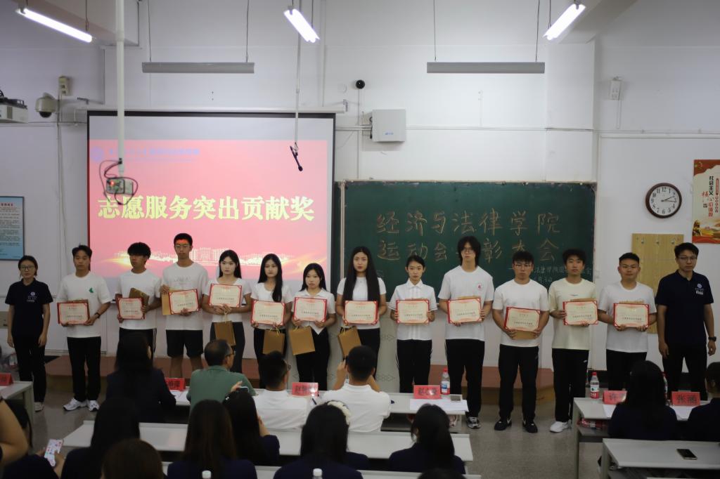 会议伊始,全体与会人员共同奏唱国歌。通过一段精心制作的视频,大家共同回顾经法运动健儿在第五十三届运动会中的卓越表现。随后,团委副书记张鹏飞宣读学院体育道德风尚奖、志愿服务突出贡献奖、先进个人及优秀运动员的获奖名单。团委学生副书记邱千纯、刘帅家为5个班级颁发体育道德风尚奖;学生会执行主席赵心豪、体育部负责人李佳澳为12名优秀志愿者颁发荣誉证书;学办主任齐艳萍、团委副书记张鹏飞为21名运动会工作人员授予先进个人奖;党委书记赵智博、党委副书记张国华为79名优秀运动员颁发荣誉证书。最后,获奖学生与老师合影留念,掌声雷动。