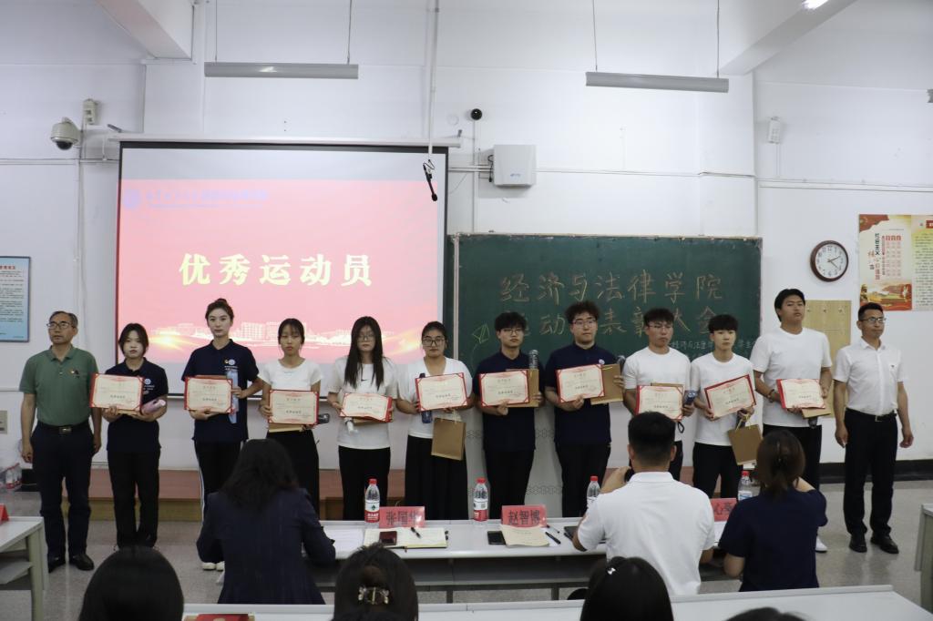 6月3日,经法学院于博学楼C102召开第五十三届运动会表彰大会。会议由学院学生会主席团成员刘家辉主持,学院党委书记赵智博、党委副书记张国华、学办主任齐艳萍、团委副书记张鹏飞出席会议,学院全体团学骨干及运动员近200人参加会议。