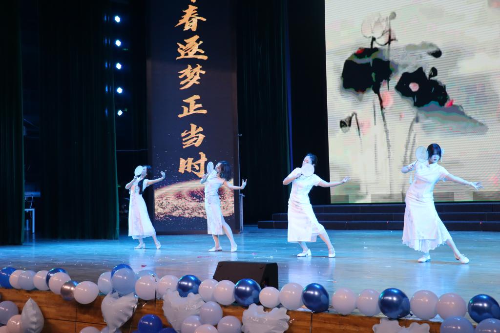 随后,歌曲《漂洋过海来看你》温情登场,舞蹈《青花瓷》以古典之美勾勒东方意境;《我们的歌》唱响团结与梦想;舞蹈串烧《Solo》节奏紧凑、卡点精准,燃爆全场;《向阳而生》以激昂旋律唱出奋发向上的青春信念。光影流转间,舞台成为青春的画布,故事与梦想在此交织闪光。