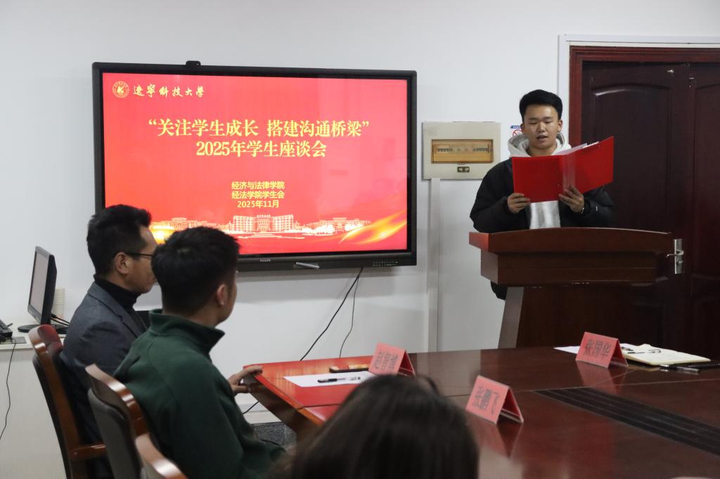 为进一步畅通师生沟通渠道,切实回应学生诉求,11月21日,经法学院在博识楼A305召开“关注学生成长 搭建沟通桥梁”2025年学生座谈会。学院党委书记赵智博、党委副书记张国华、团委书记张鹏飞、学生会生活权益部负责人王乔诗以及本科生、研究生各班级学生代表共计41人参会。