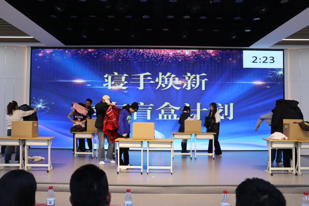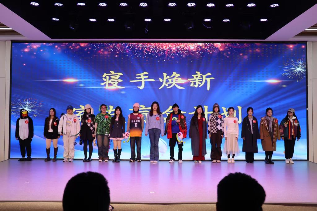 活动在孙浩鸣同学带来的小提琴独奏《富士山下》中拉开帷幕。悠扬的琴声将现场观众带入温柔的意境,也奏响了青春的序曲。本次寝室文化节共设“寝室vlog大赛”“才艺比拼大赛”“叠被子大赛”“‘寝’手换新——室友造型盲盒设计大赛”四个环节,内容丰富、形式多样,充分展现了同学们积极向上的精神风貌。在“寝室vlog大赛”中,各寝室通过精心拍摄的视频,记录了日常生活中的欢笑、互助与感动,传递出乐观进取的生活态度,展现了寝室成员间真挚的情谊与青春的活力;“才艺比拼大赛”更是将气氛推向高潮。合唱《相亲相爱一家人》唱出了同学们守望相助、携手共进的真挚情感,歌曲《Free Loop》展现了青年学子挣脱束缚、追求热爱的洒脱与自信,赢得现场阵阵掌声与欢呼;紧接着的“叠被子大赛”环节中,选手们在主持人的号令下迅速进入状态,动作干脆利落,一个个棱角分明的“豆腐块”在方寸之间诞生,展示了寝室生活中的严谨与巧思;“‘寝’手换新——室友造型盲盒设计大赛”则将现场气氛再次点燃。选手们以寝室为单位,利用有限时间和服饰,创意搭配出或优雅、或个性、或灵动的造型,充分体现了同学们的时尚品位与青春想象力。每一套穿搭都像是一份独特的青春宣言,彰显着自信与张扬。钮苏涵同学随后带来的舞蹈《我最红》更以动感的节奏与热烈的姿态诠释了“自信耀眼”的主题,将全场气氛推向顶点。