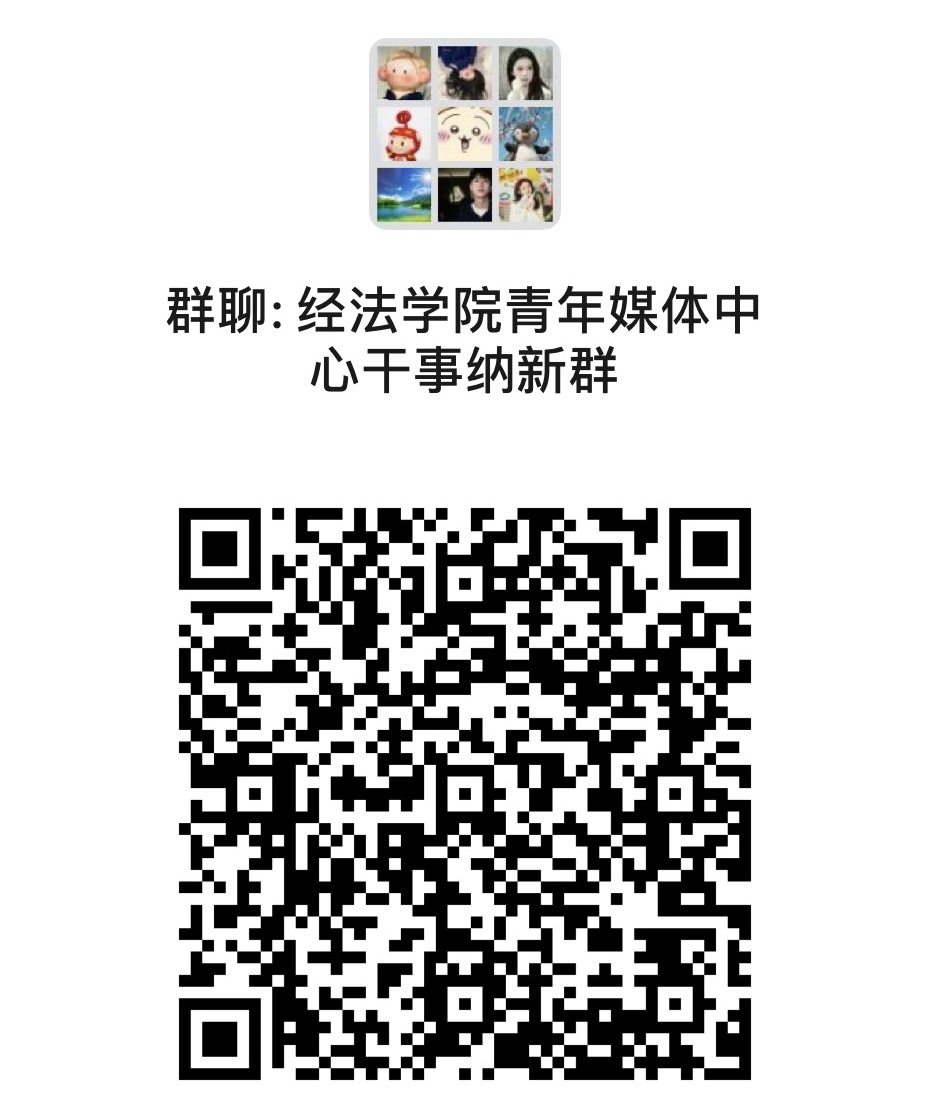 2、报名同学须扫码加入经法学院青年媒体中心干事纳新微信群,笔试、面试等其他考察环节的具体安排将在群内另行通知。扫描上方二维码加入微信群扫描上方二维码获取报名表