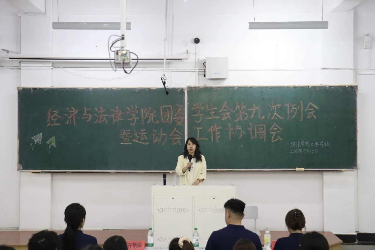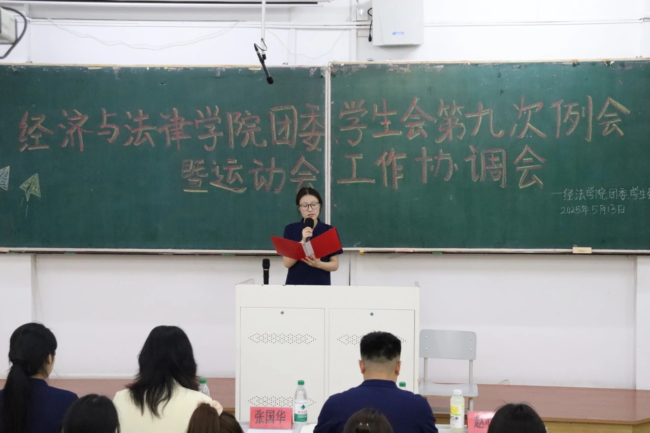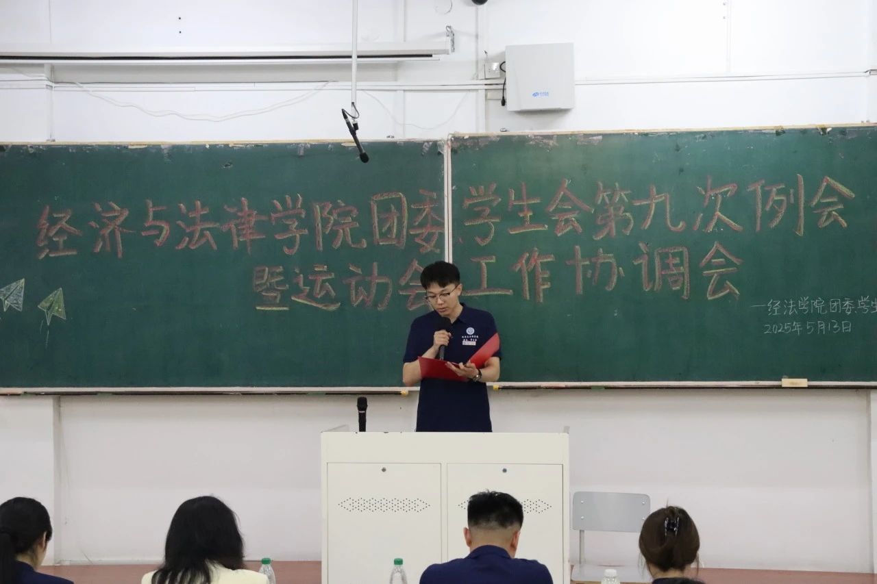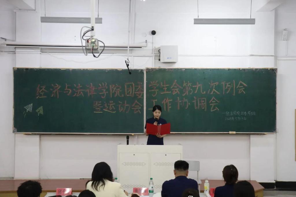 5月13日,经法学院团委、学生会第九次例会暨运动会工作协调会于博学楼C102顺利召开。本次会议由学院团委副书记张鹏飞主持,学院学办主任齐艳萍出席会议、全体团学骨干以及运动员共计240余人参加会议。