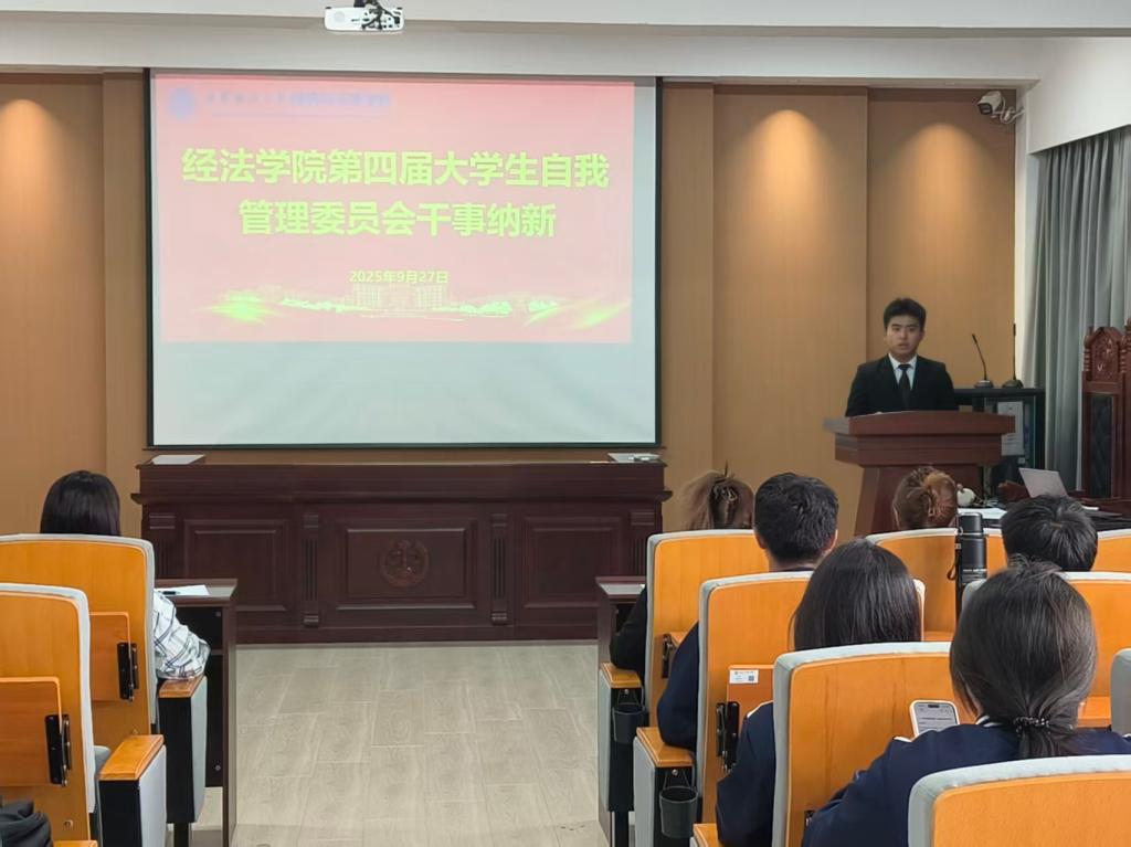 9月27日下午,经法学院于博识楼A402召开经法学院第四届大学生自我管理委员会(简称自管会)干事竞选会议。会议由经法学院自管会主席刘鑫喆主持,学院学办主任李路云出席会议,共有20名同学参与竞选。