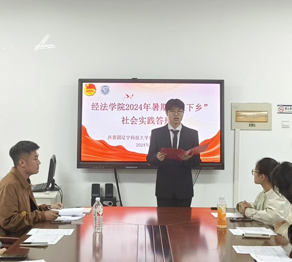 9月14日,经法学院于博识楼A305举办2024年暑期“三下乡”社会实践答辩会。本次答辩会由分团委实践与社团指导中心工作人员刘帅家主持,学院团委副书记张鹏飞、团学骨干及各班团支书担任评委,共有来自不同年级的7支队伍参与本次答辩。