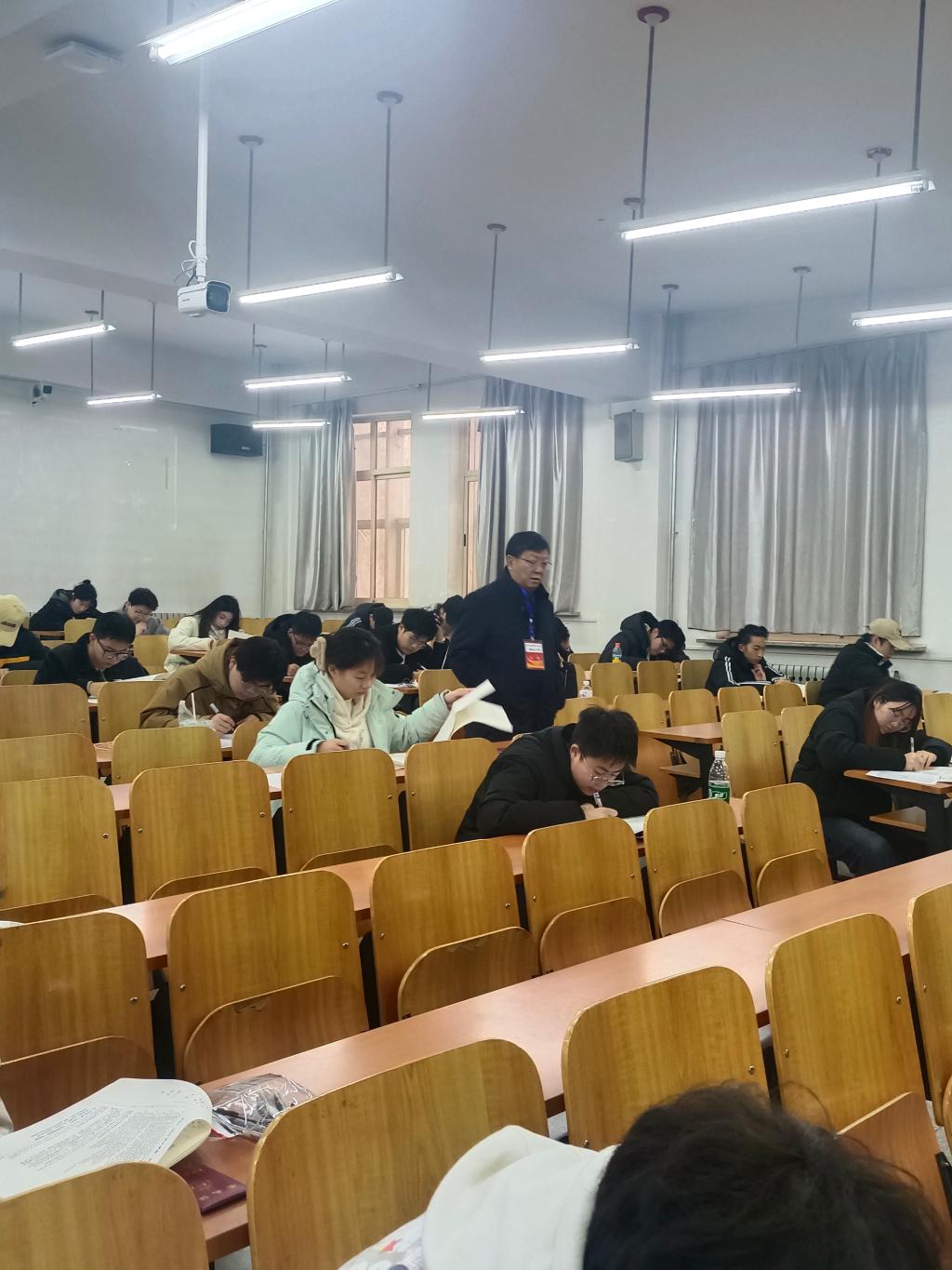 考试首日,全校16个学院4700余名学生参加了考试。各学院考试工作领导小组成员,到考场进行了巡视检查。从巡视的总体情况来看,期末考试整体情况良好,考场纪律严明、秩序井然,监考教师认真履责,考生考风优良。与此同时,期末考试期间,每个考场配备了金属探测仪,对入场学生进行安检,严防手机等电子设备带入考场;每个考场的监控探头全程开启,考试时学校监控室有专人通过监控视频进行考场巡视。