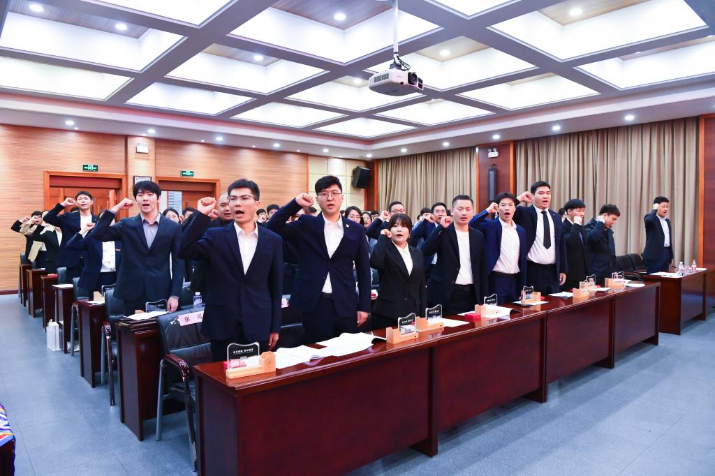 教务处处长樊增广介绍新教师岗前培训的部署及要求,强调了培训的重要性和实效性。人事处处长郭良栋宣布青蓝结对名单。土木工程学院院长周卫红以《弘扬教育家精神 做新时代高素质专业化教师》为题,结合学校和学院制度,交流对新教师的全面培养。2023年新教师培训班优秀结业学员电子与信息工程学院闫传博分享了他入职一年以来的感想,他以“教研结合 教学共进”为主题,讲述了自己的成长经历和教学理念。新教师代表材料与冶金学院夏博作题为《筑梦科大 扬帆起航》的感言,表达了对未来的憧憬和希望。