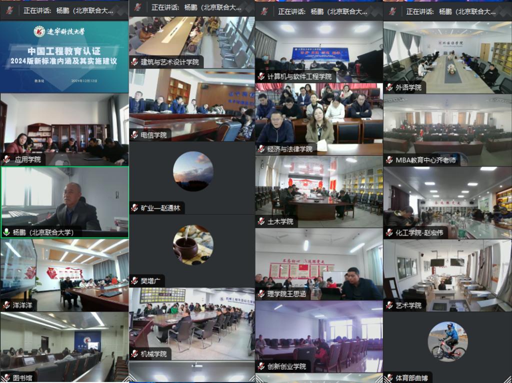 12月12日,九游在线官网_九游(中国)邀请北京联合大学杨鹏教授做工程教育专业认证培训,主题为“中国工程教育认证2024版新标准内涵及其实施建议”,全校各学院院长、教学院长、专业负责人及相关教师参会。
