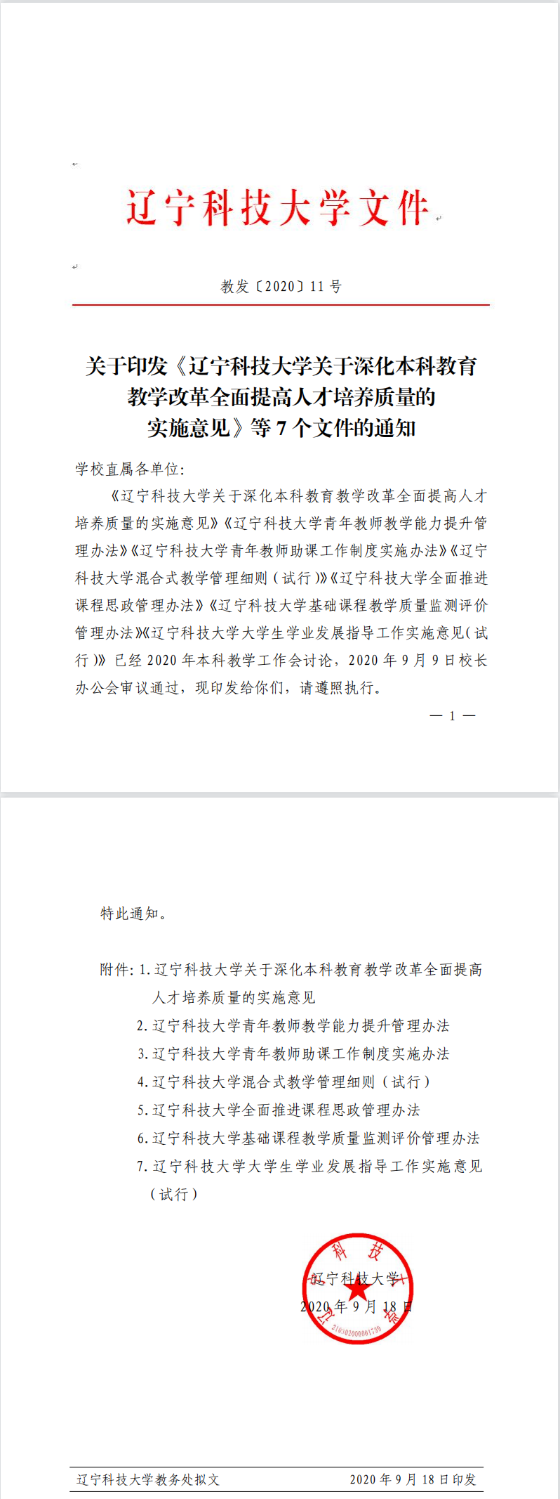 教发〔2020〕11号:关于印发《九游在线官网_九游(中国)关于深化本科教育教学改革全面提高人才培养质量的实施意见》等7个文件的通知
