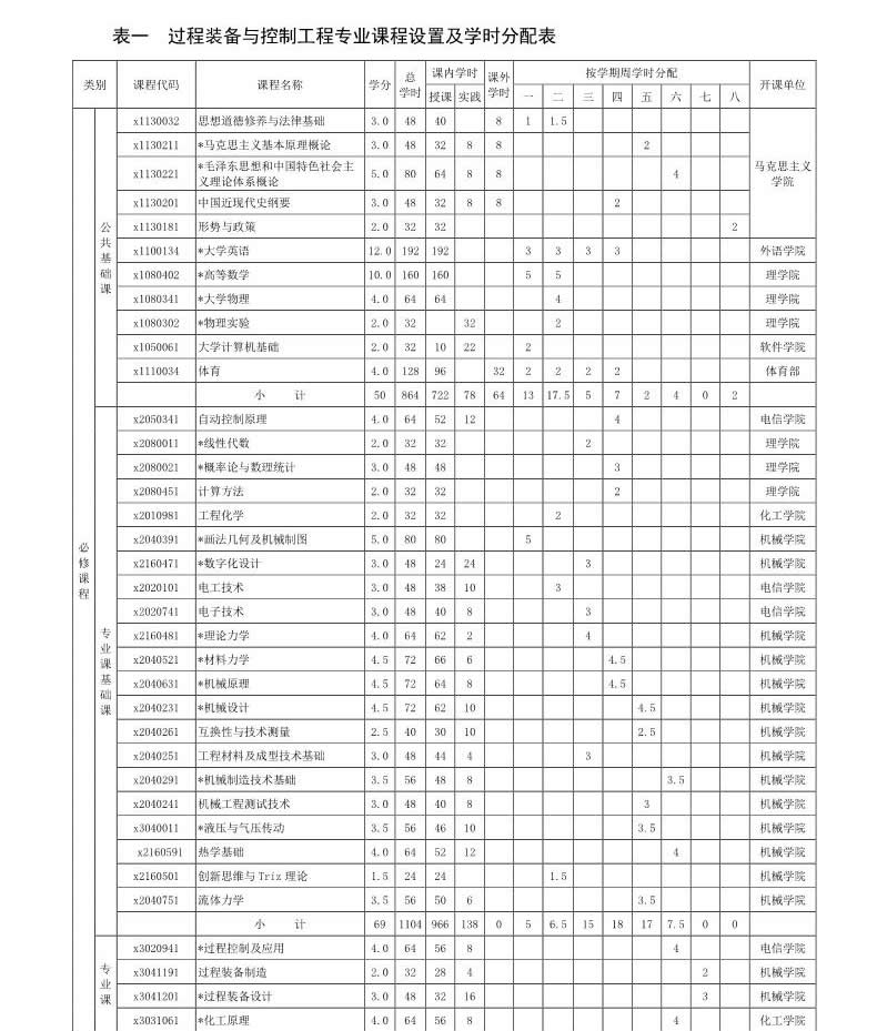过程装备与控制专业培养方案(080206)(2017版)